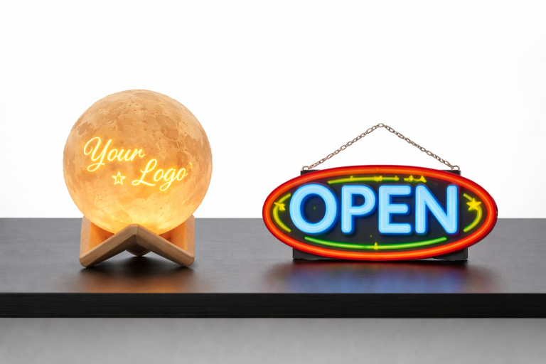Dalle insegne decorative ai loghi aziendali luminosi, ogni creazione è realizzata su misura.