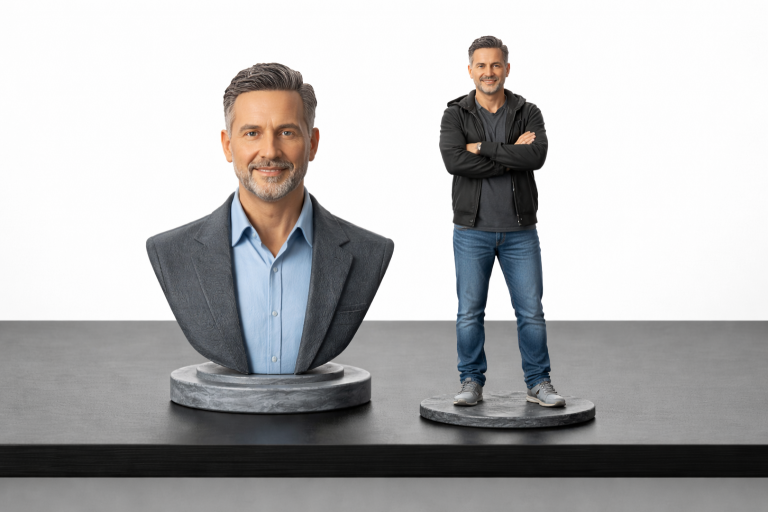 Realizziamo busti e figure stampate in 3D su misura, partendo da foto o idee personalizzate.